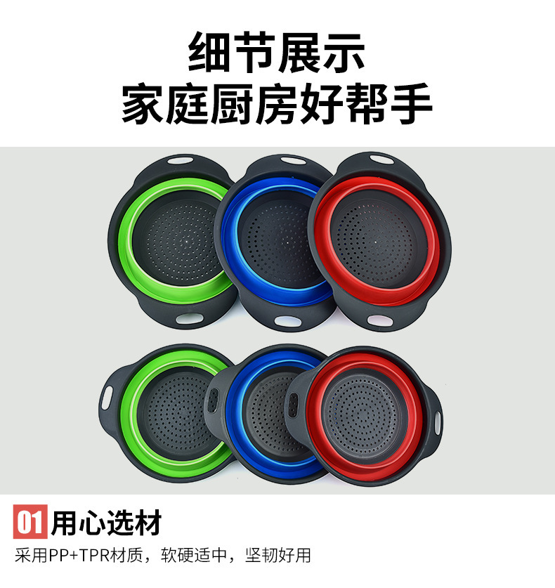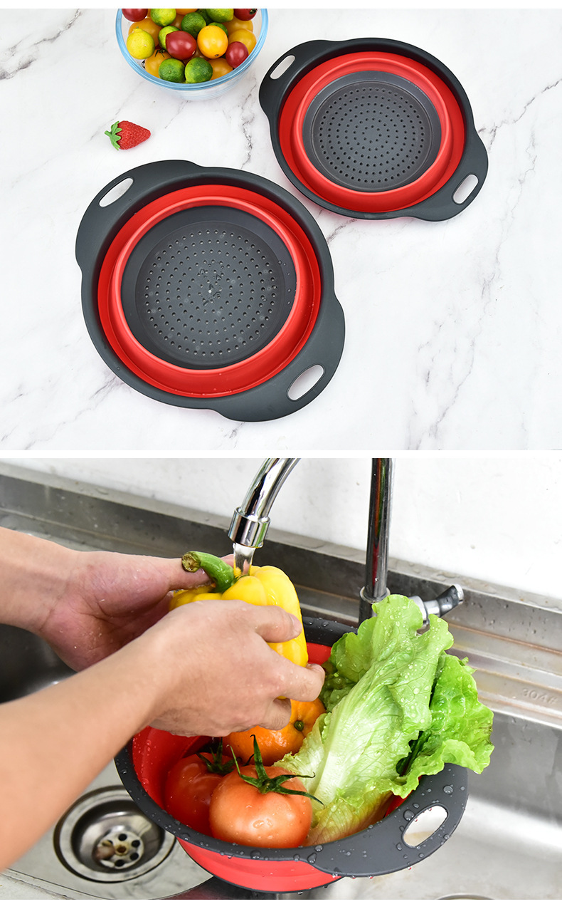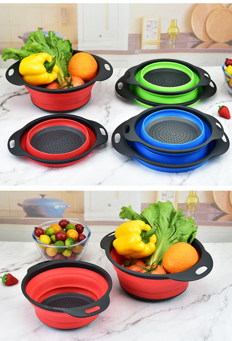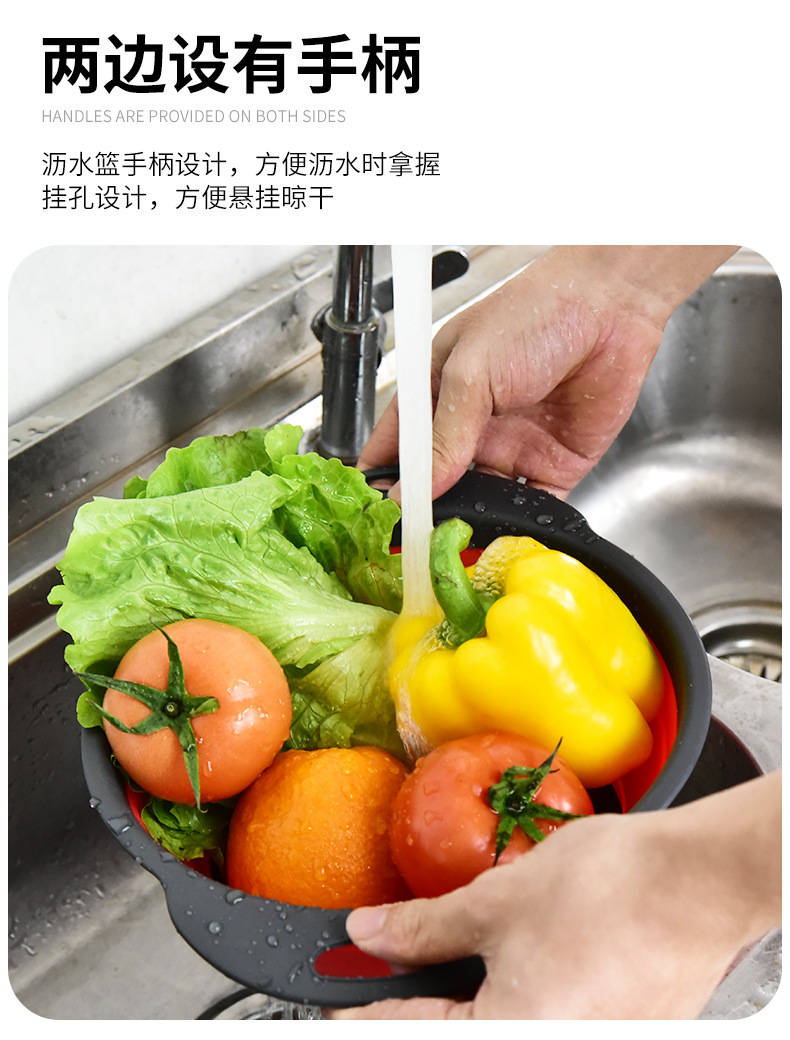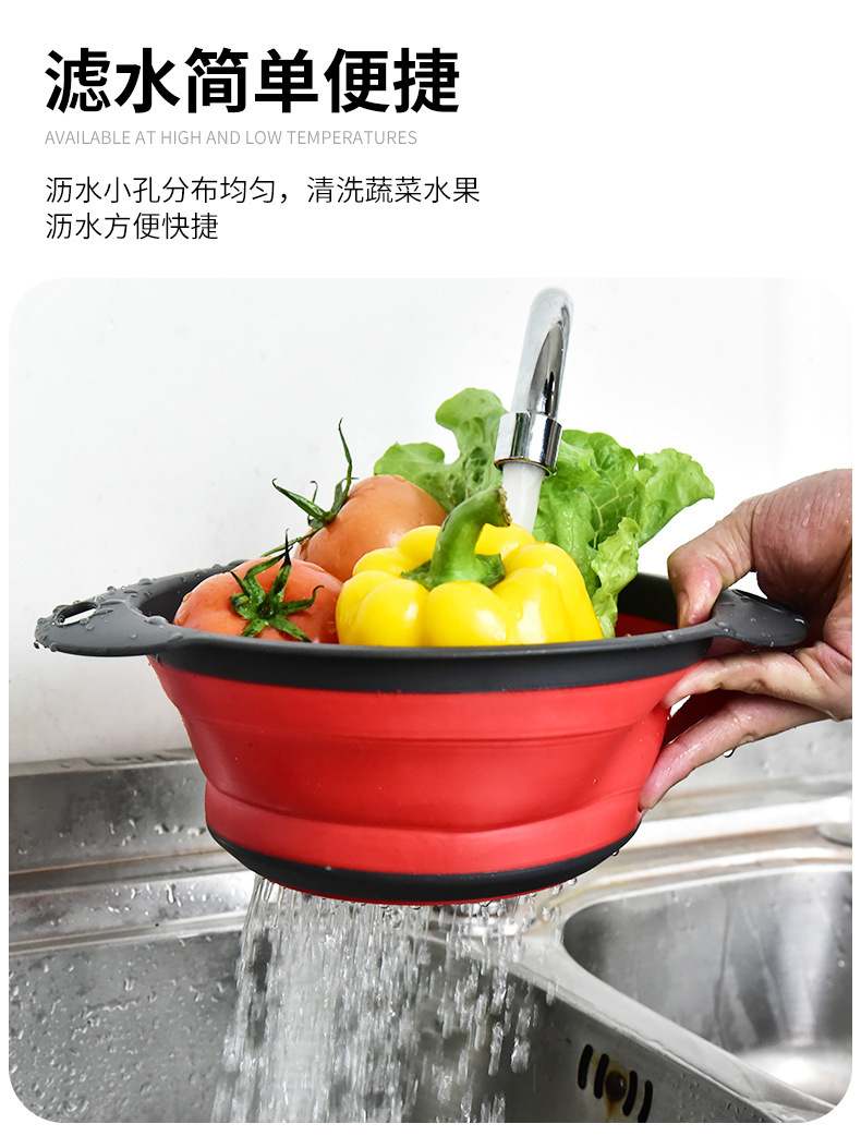 Plastic Folding Vegetable Washing Basin Multi-Functional Kitchen Dual-Use Basket Three-in-One Foldable Drain Basket Fruit Storage Rotating