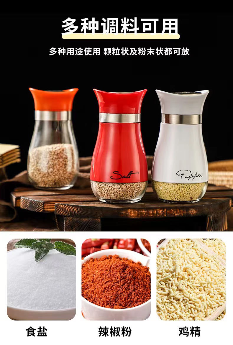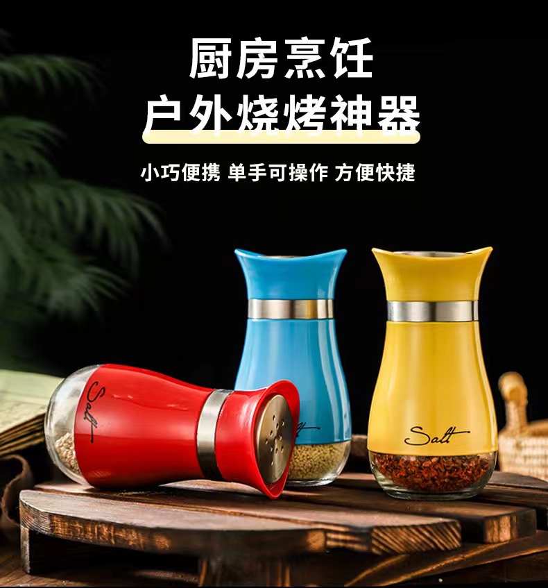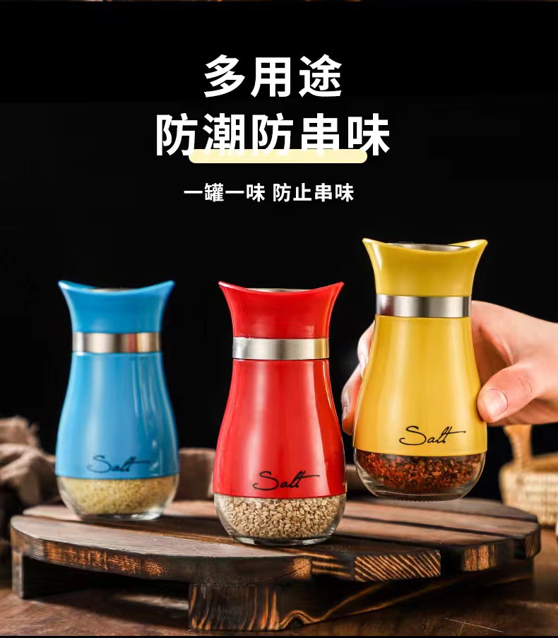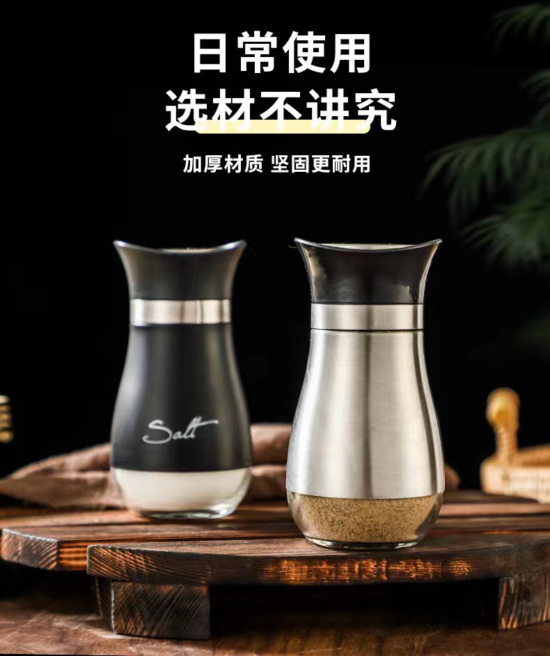 Stainless Steel Glass Seasoning Jar Seasoning Bottle Kitchen Household Suit Salt Jar Modern Simple Pepper Seasoning Bottle
